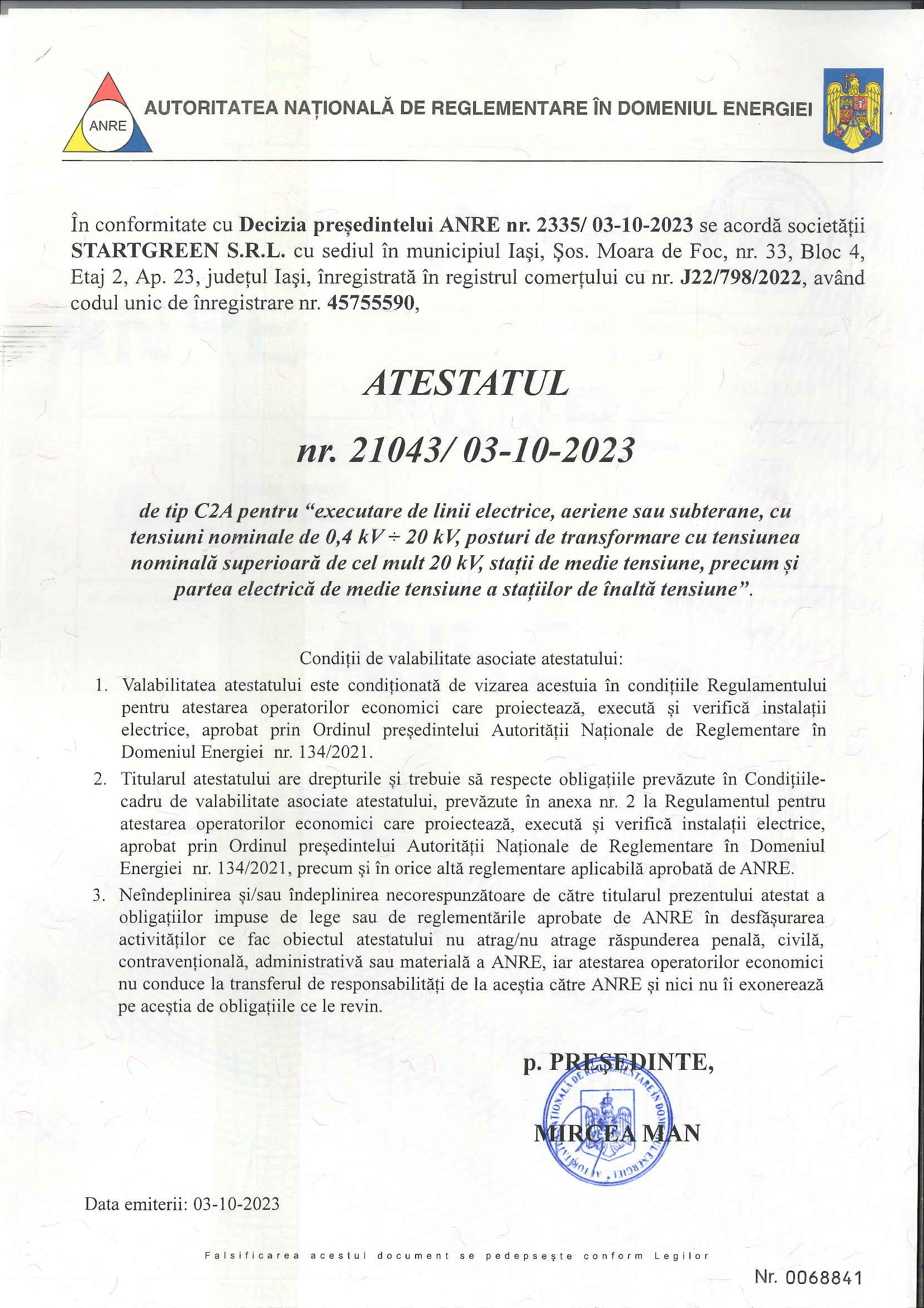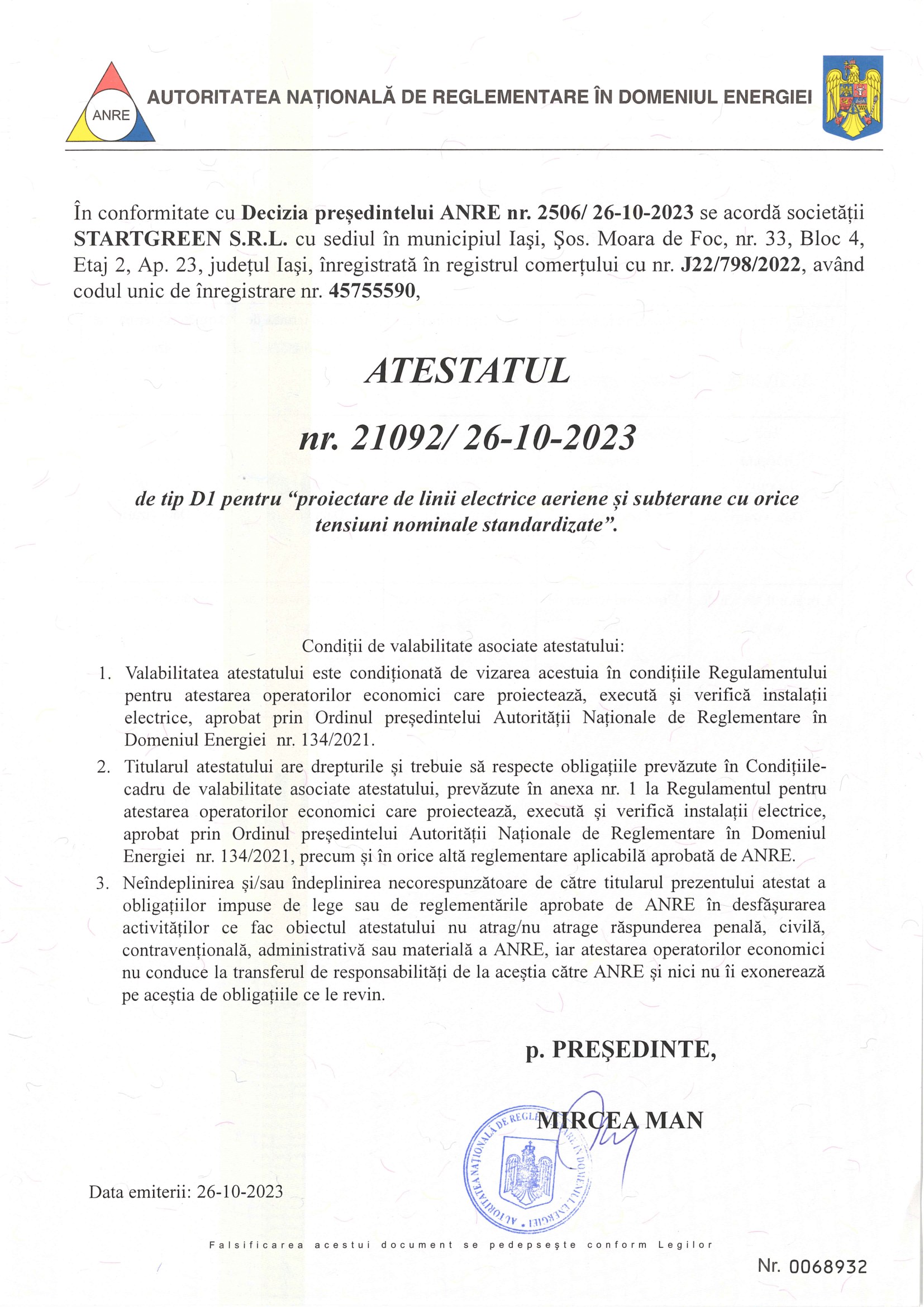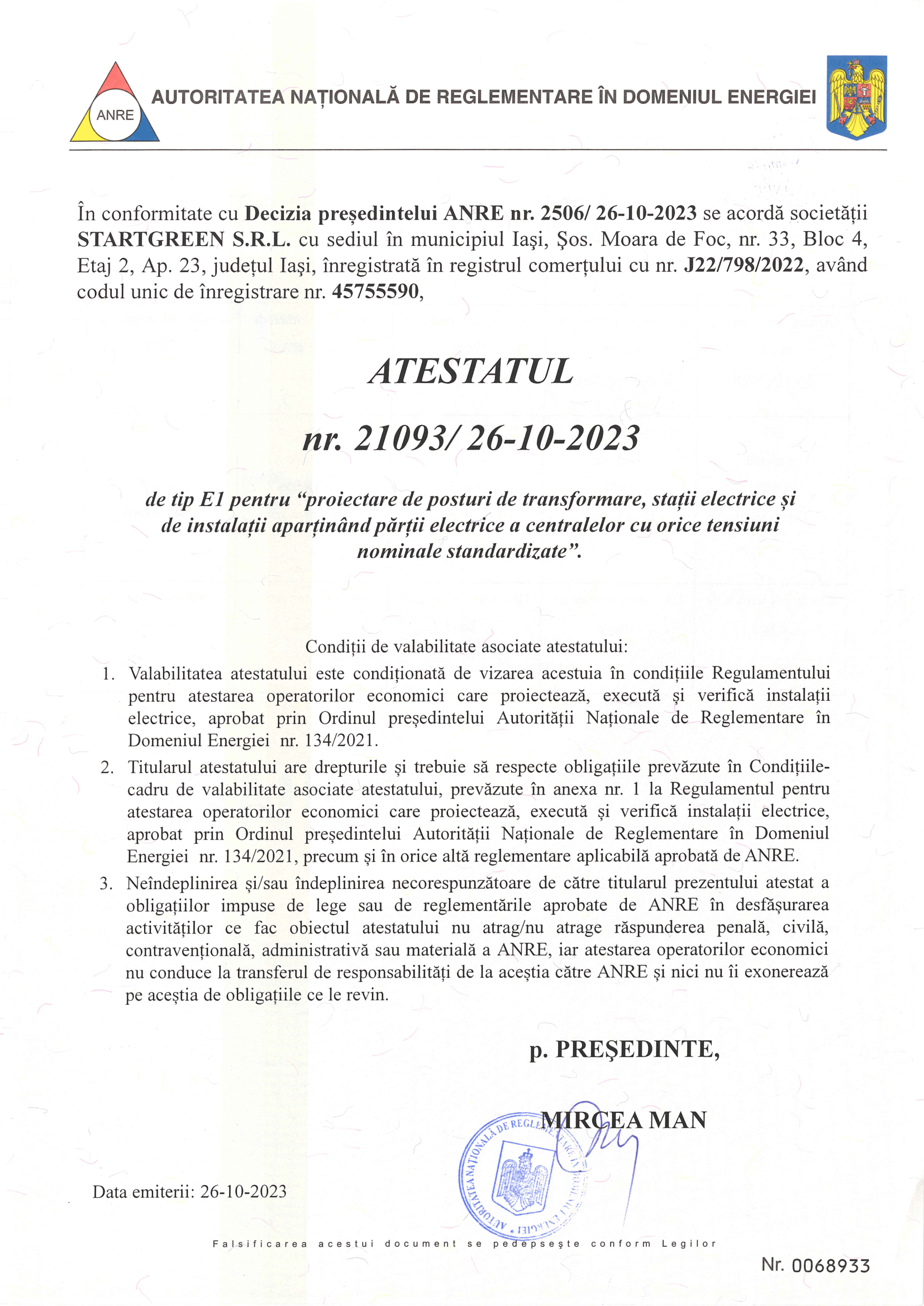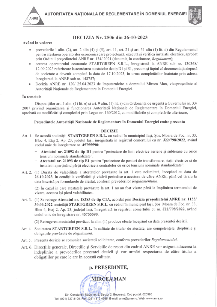 Obținem certificatul de racordare, care confirmă că instalația este conformă și pregătită pentru utilizare. Este un pas-cheie spre activare.